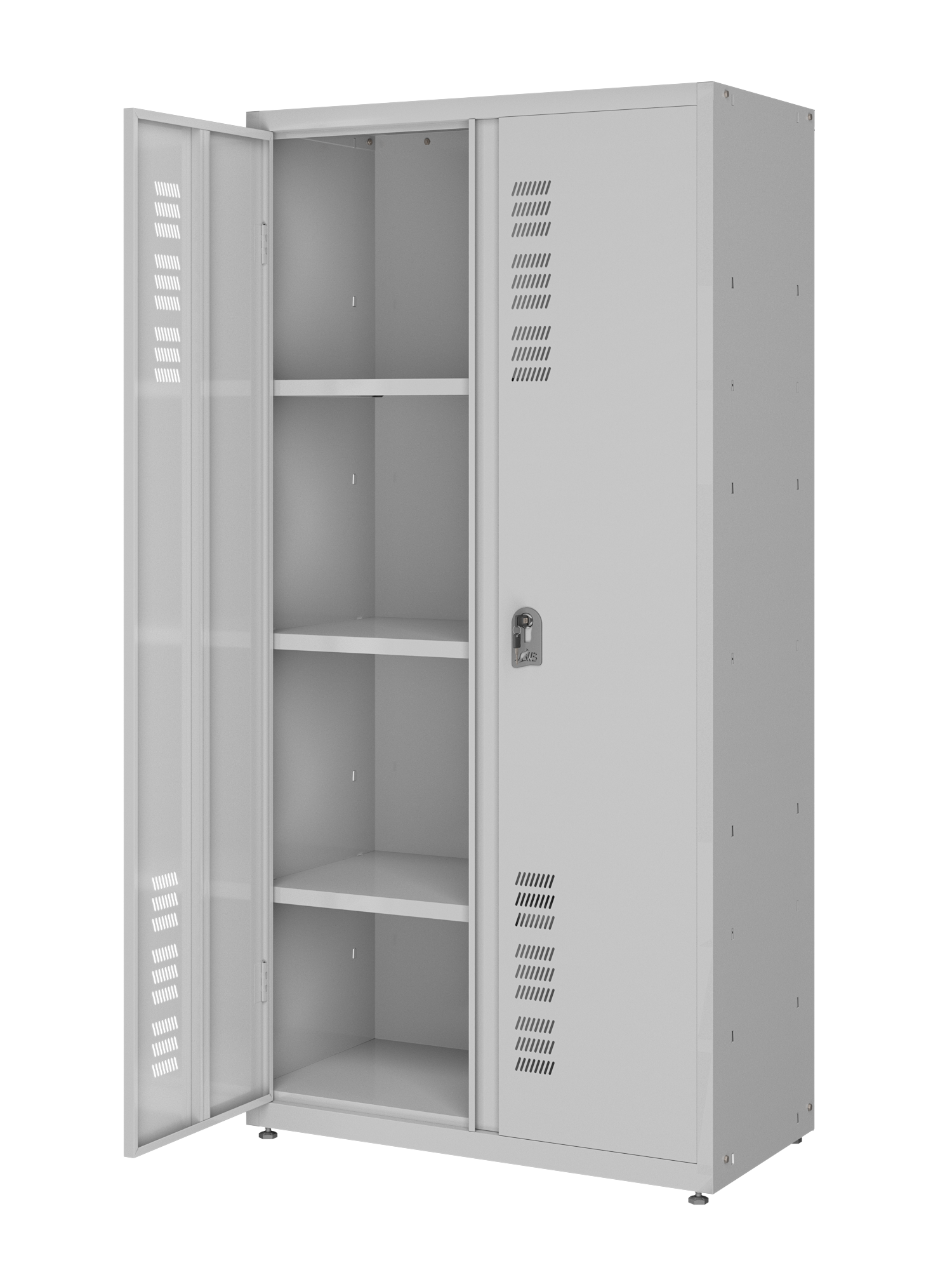 Móvel com puxador estampado verticalmente. Estampas nas portas que permitem ventilação.